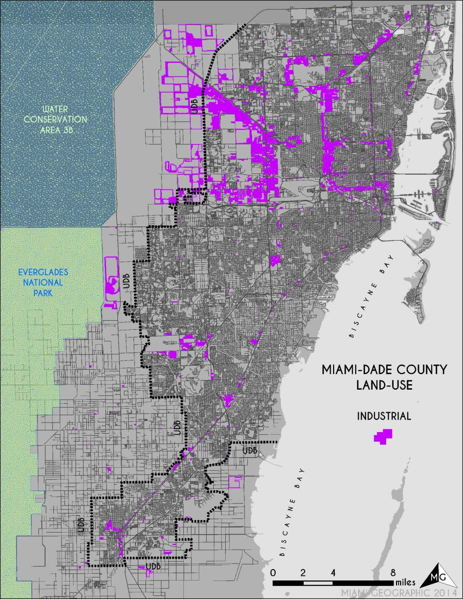 INDUSTRIAL_MAP_MG Published 2014/04/10 at 1700 × 2200 in Land Use in Miami-Dade County ← Previous Next → Industrial Land-Use in Miami-Dade. Source: Matthew Toro. 2014.