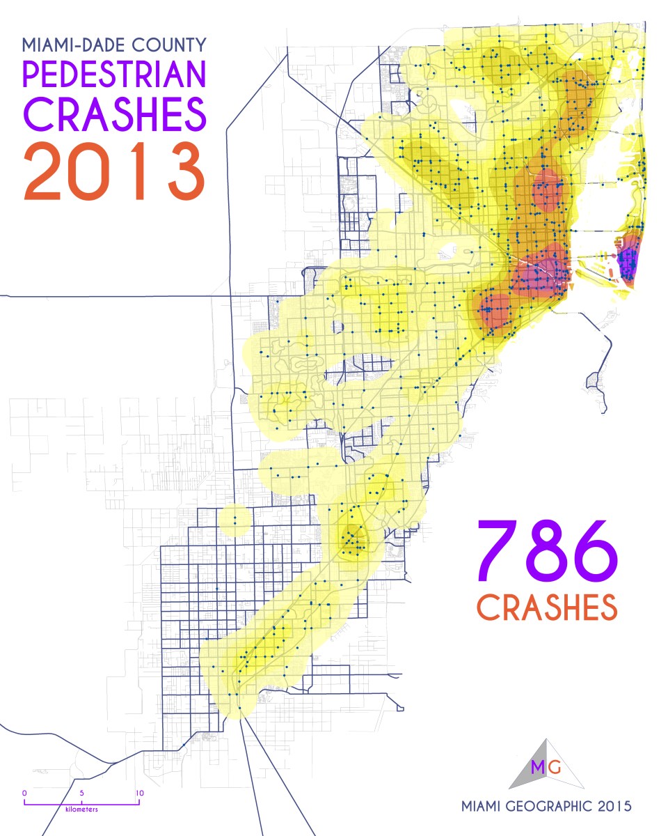 MG_MDC_PedCrash_2013 Published 2015/07/20 at 5000 × 6250 in Pedestrian Crashes in Miami-Dade County, 2005-2013 ← Previous Next → Miami-Dade Pedestrian Crashes, 2013. Data Source: FDOT Safety Office. Map Source: Sebastien Lozano & Matthew Toro. 2015.
