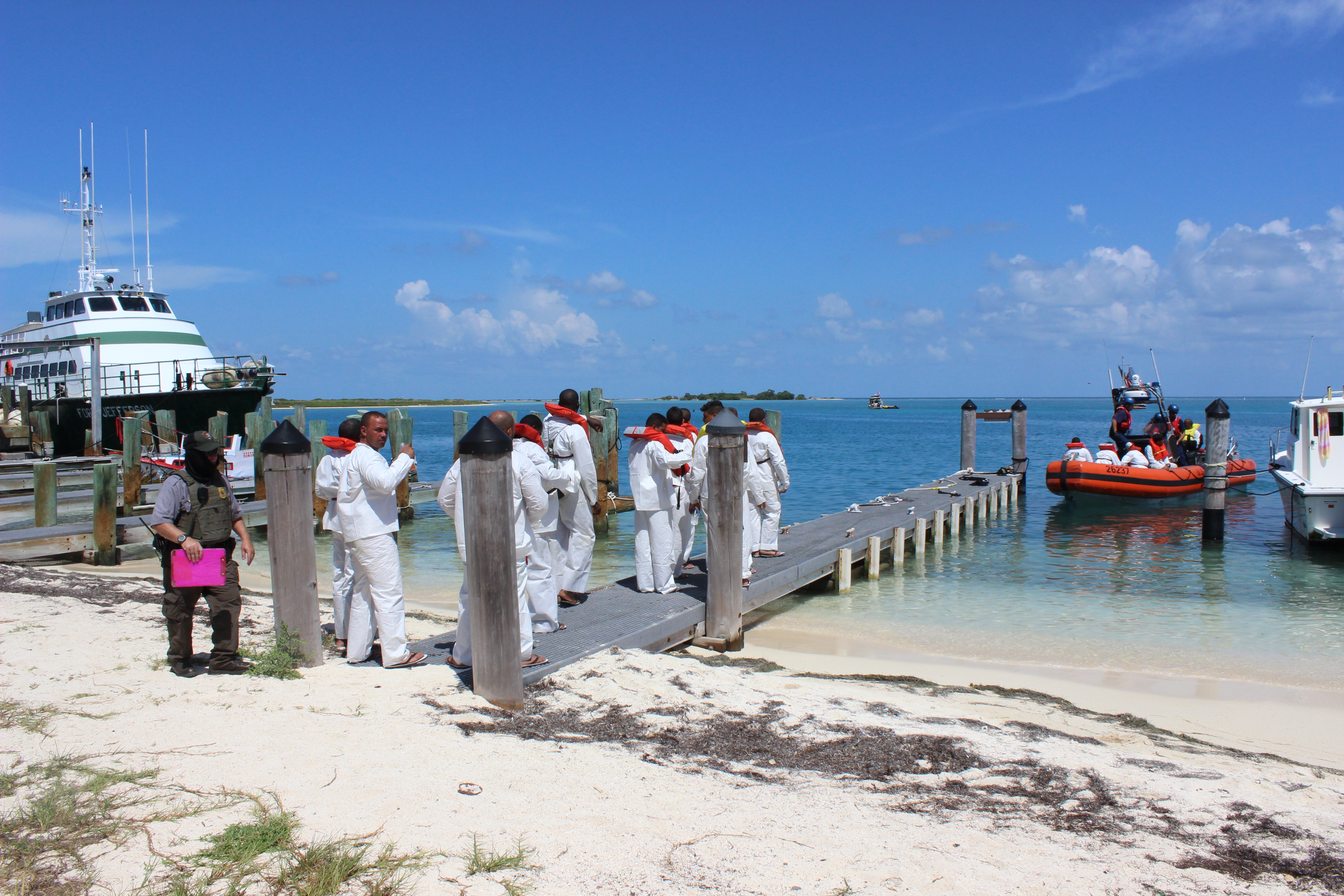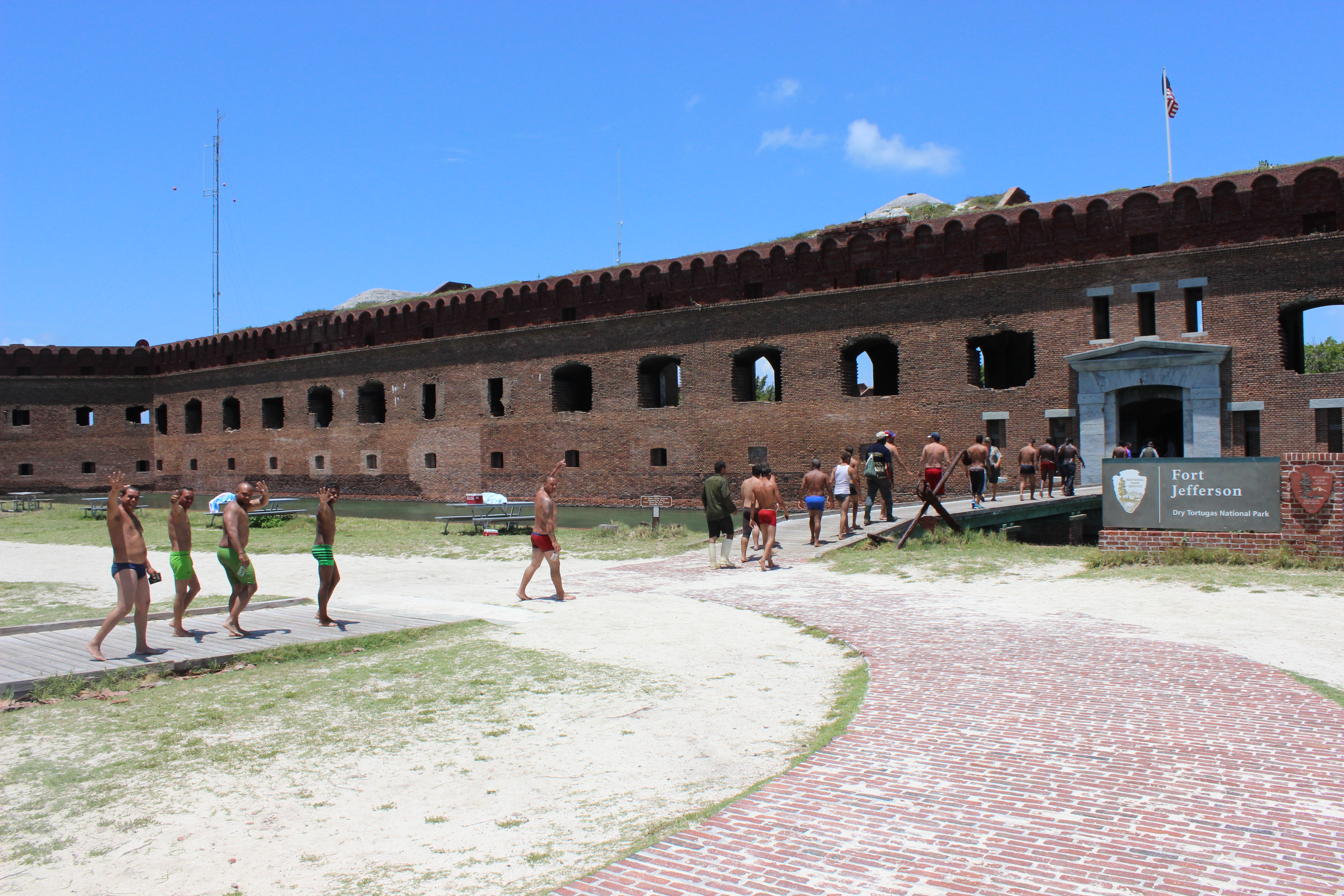 23 Cuban immigrants are escorted into historic Fort Jefferson. Photo Source: Matthew Toro. August 4, 2015.
