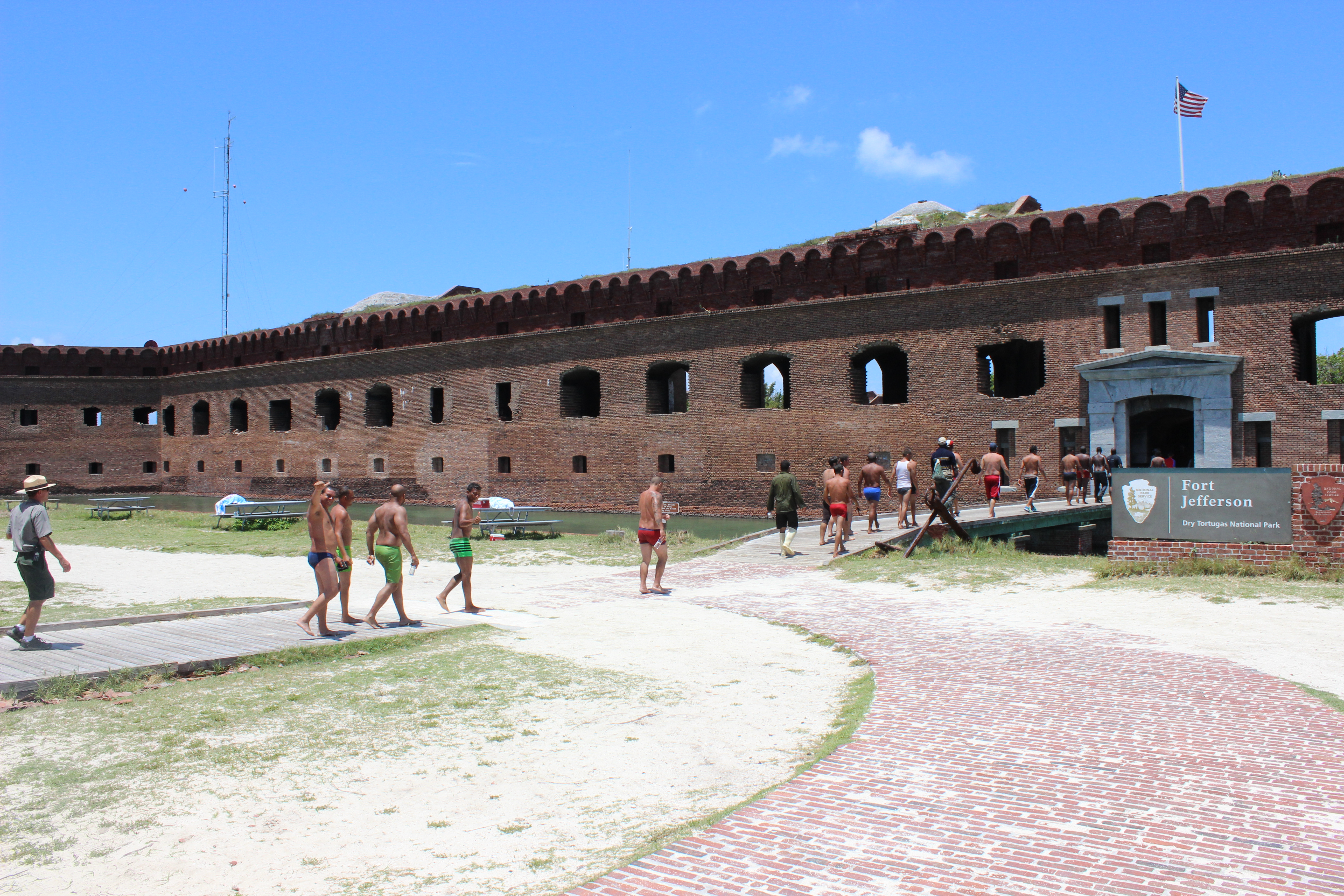 We distributed water bottles to the exhausted men as they were escorted into one of the few areas on the island offering any shade. (A reprieve from the blazing sun is an incredibly important and never-to-be-taken-for-granted feature on a set of minimally vegetated islands devoid of any of their own fresh water. In fact, the very name of the islands, Dry Tortugas, is actually a modification of their original name, Las Tortugas, meant to warn seafarers of the absence of any potable water on the islands.)