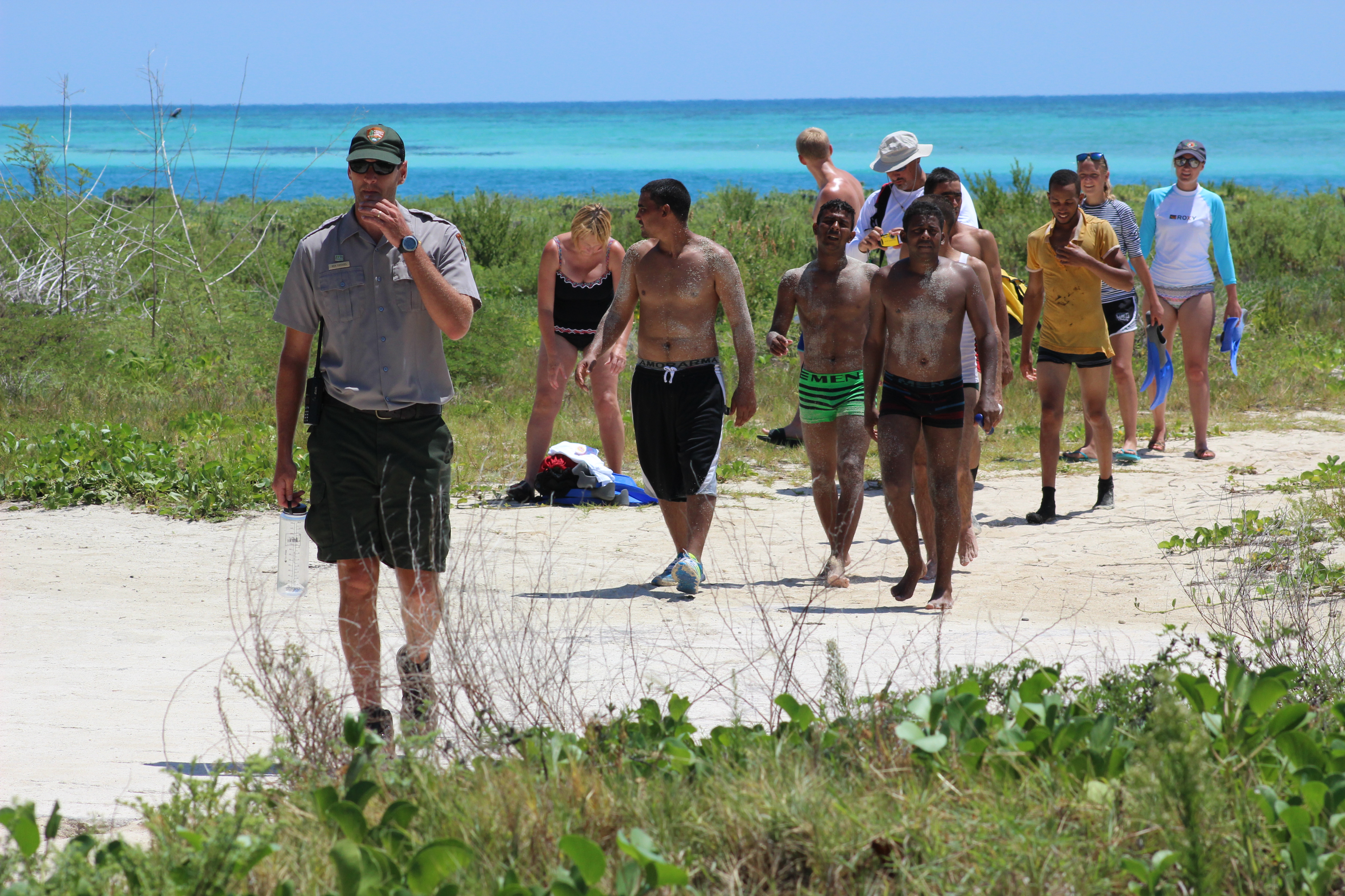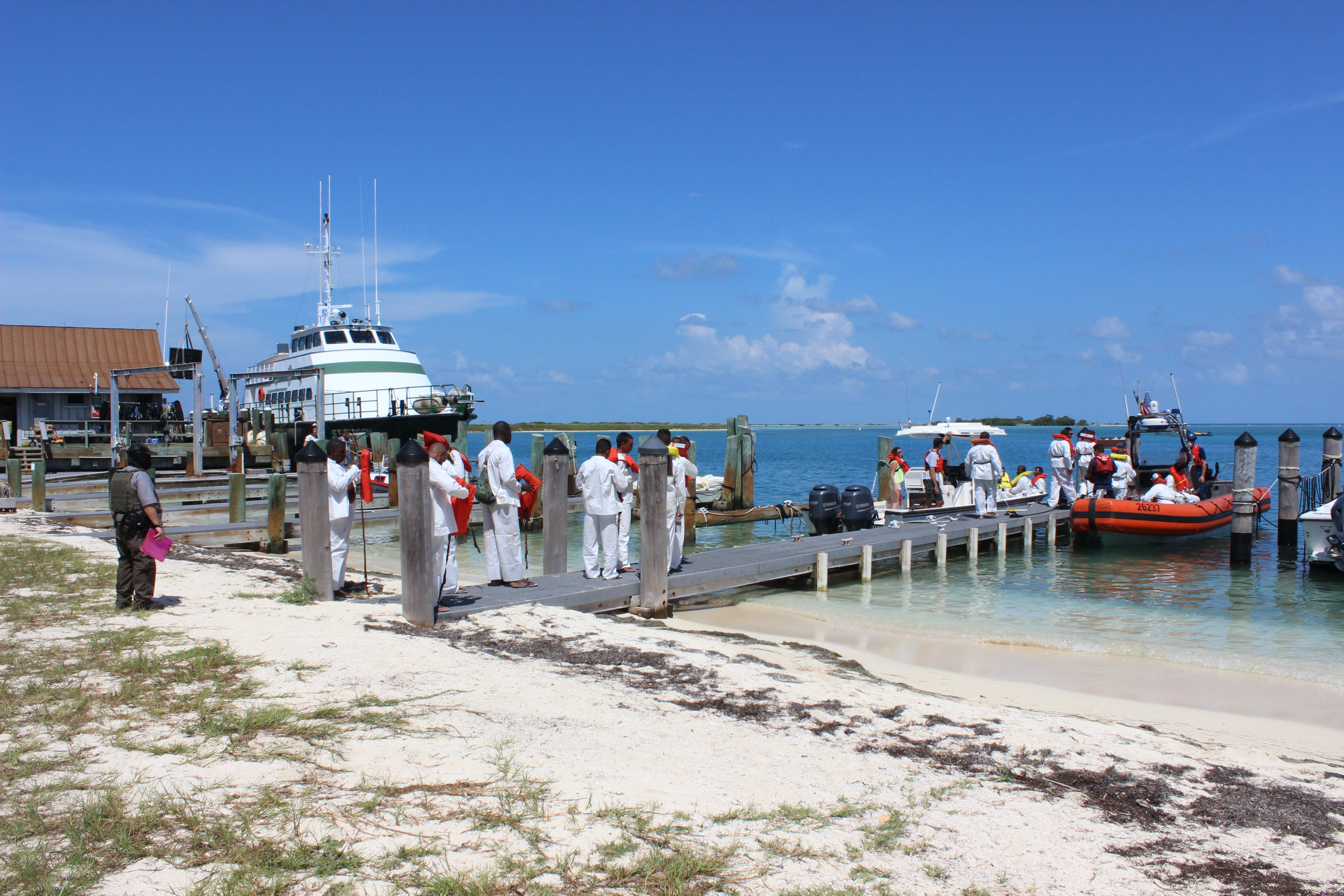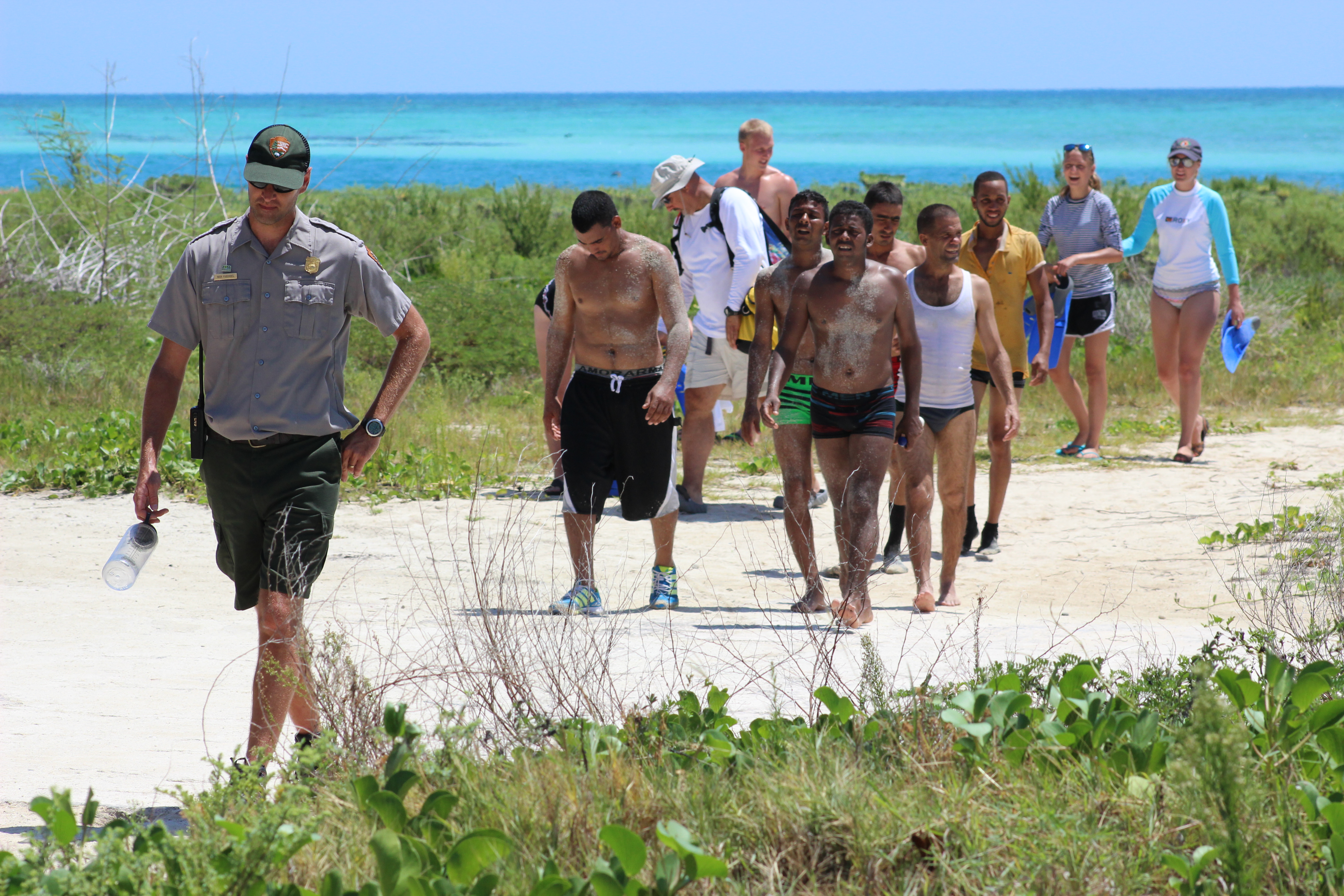 A Dry Tortugas National Park ranger leads the new arrivals to shelter and safety. Photo Source: Matthew Toro. August 4, 2015.